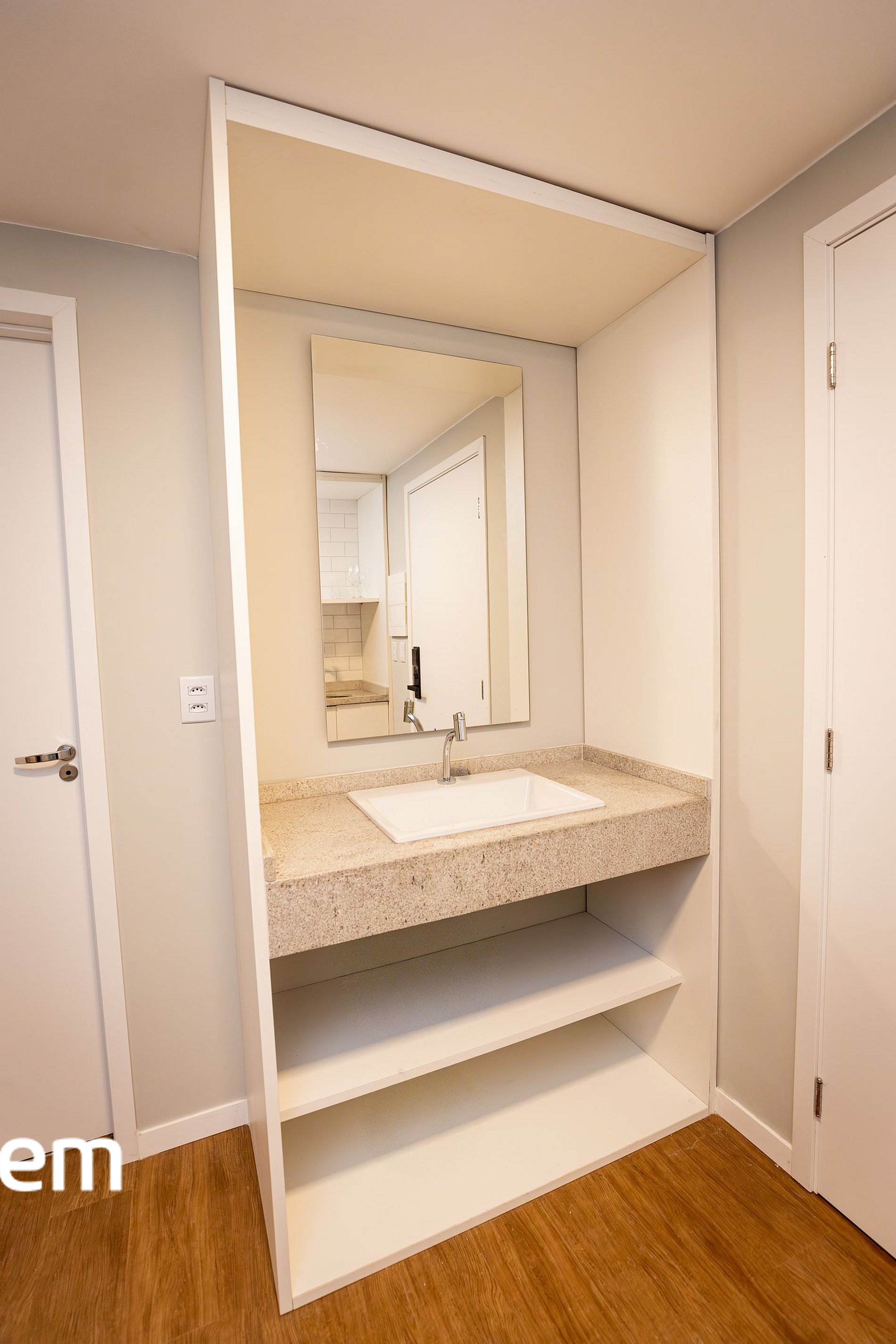 • Banheiro privativo moderno e funcional.