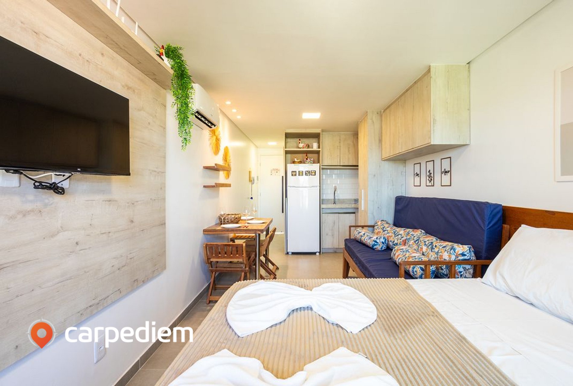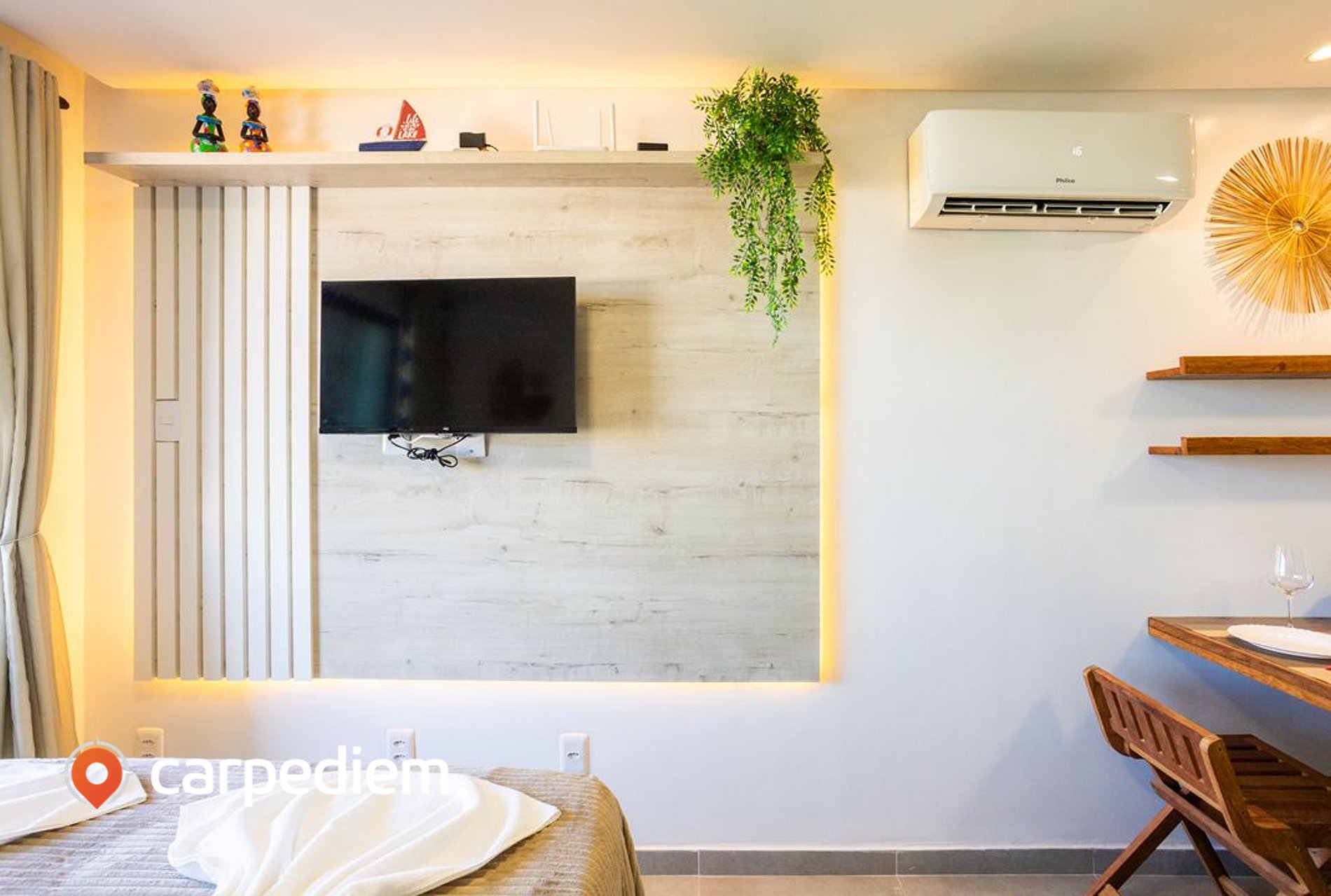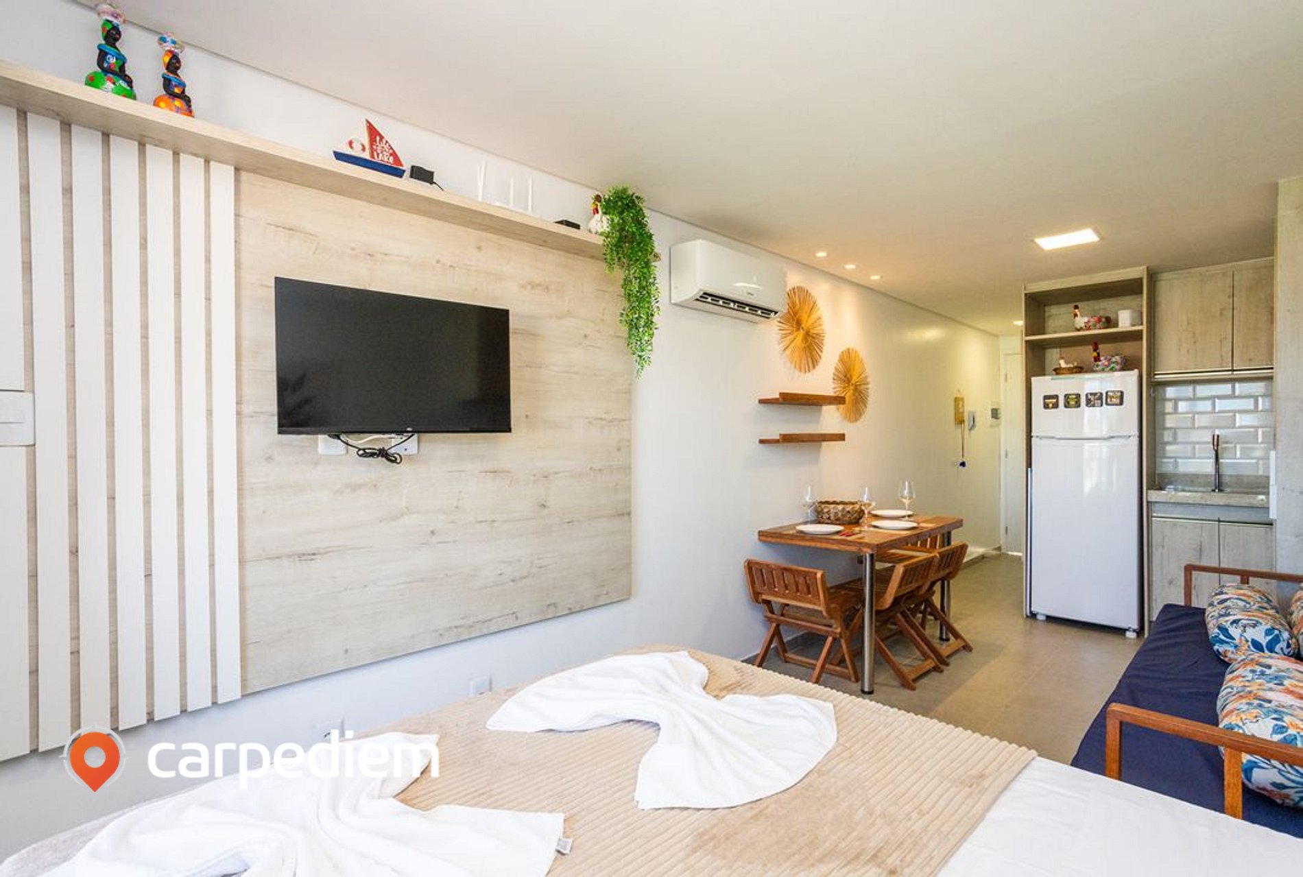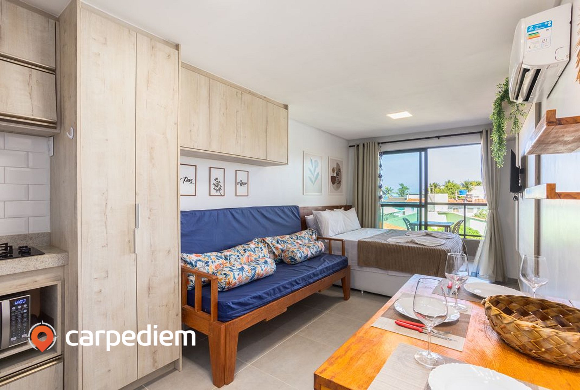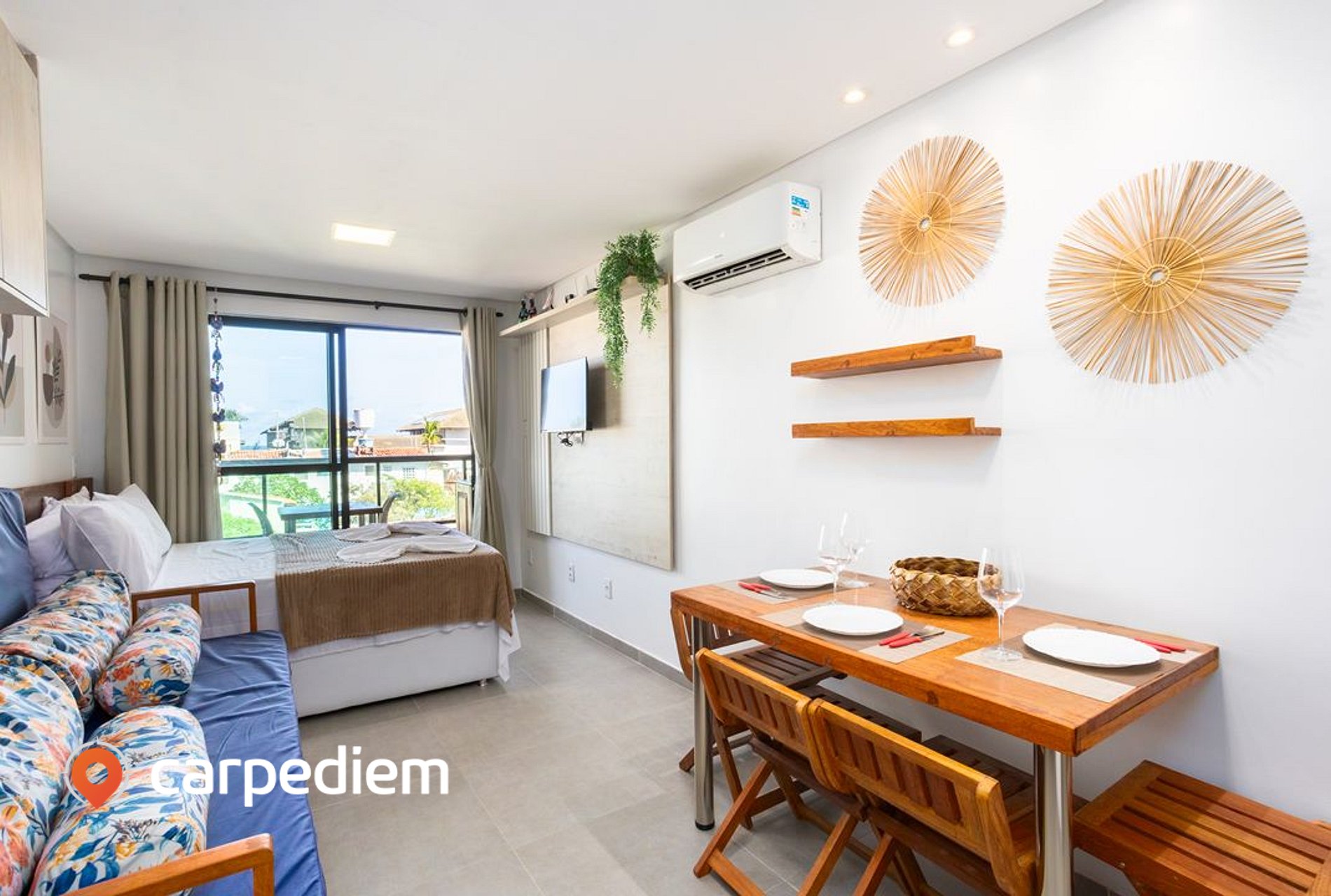 • Ambiente integrado (quarto + sala): Compacto na medida certa e muito funcional: TV, ar-condicionado e um clima agradável para relaxar depois de um dia de mar.