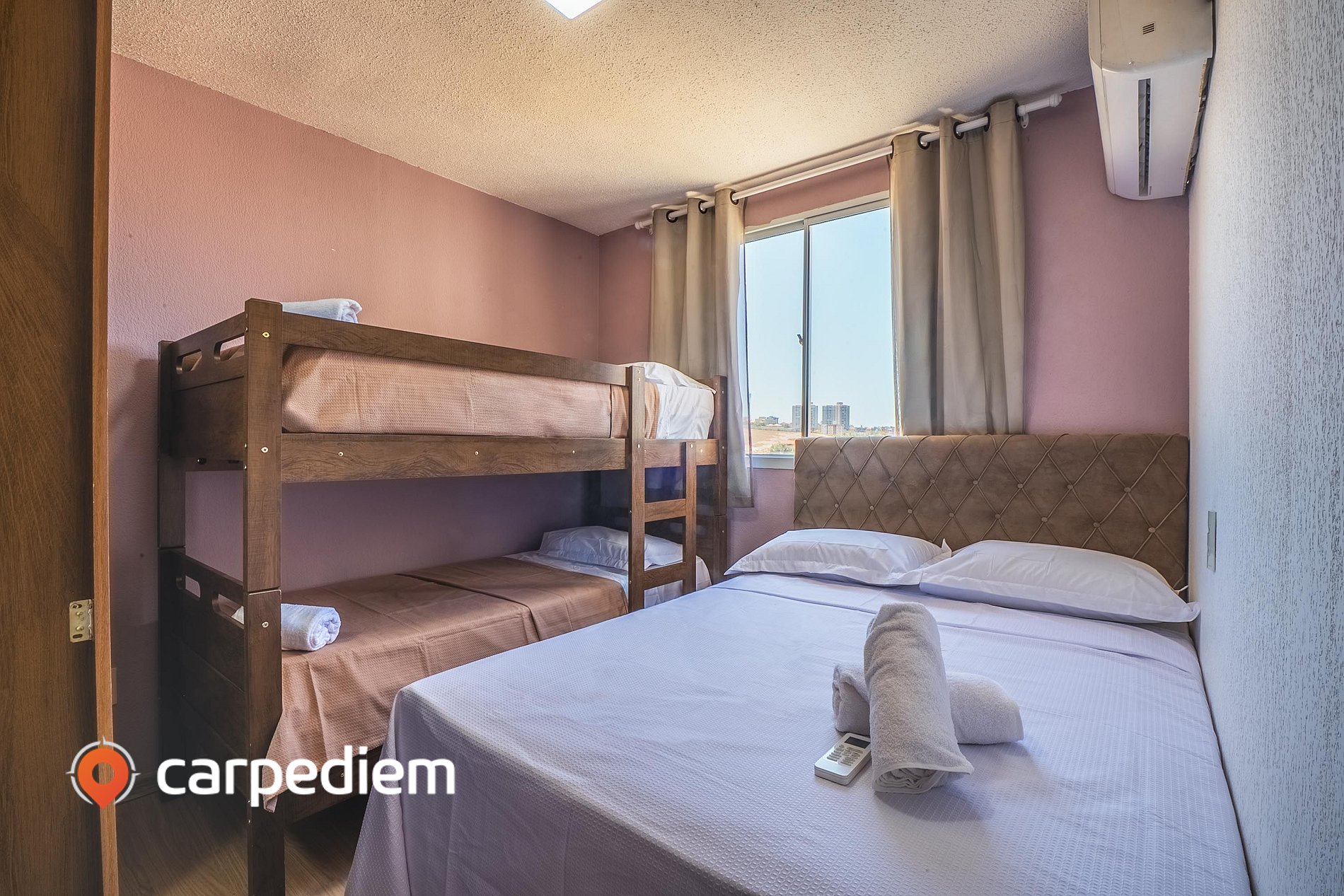 - Quarto: uma beliche + cama casal + ar-condicionado