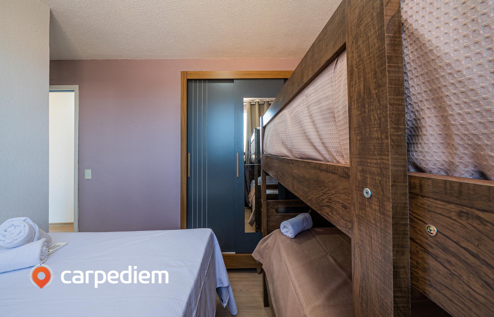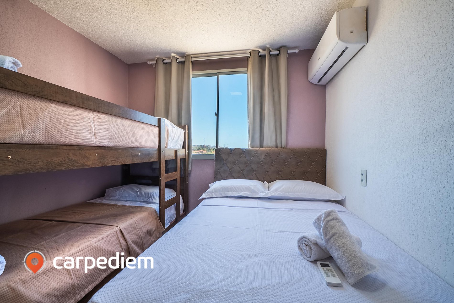 - Quarto: uma beliche + cama casal + ar-condicionado