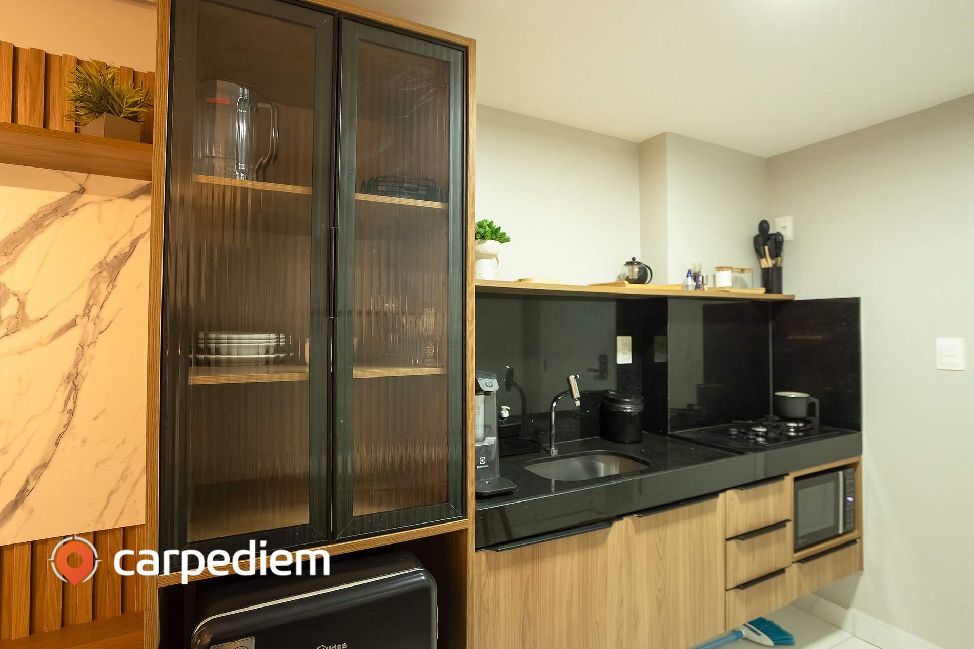 • Cozinha compacta e equipada, ideal para preparar suas refeições com praticidade