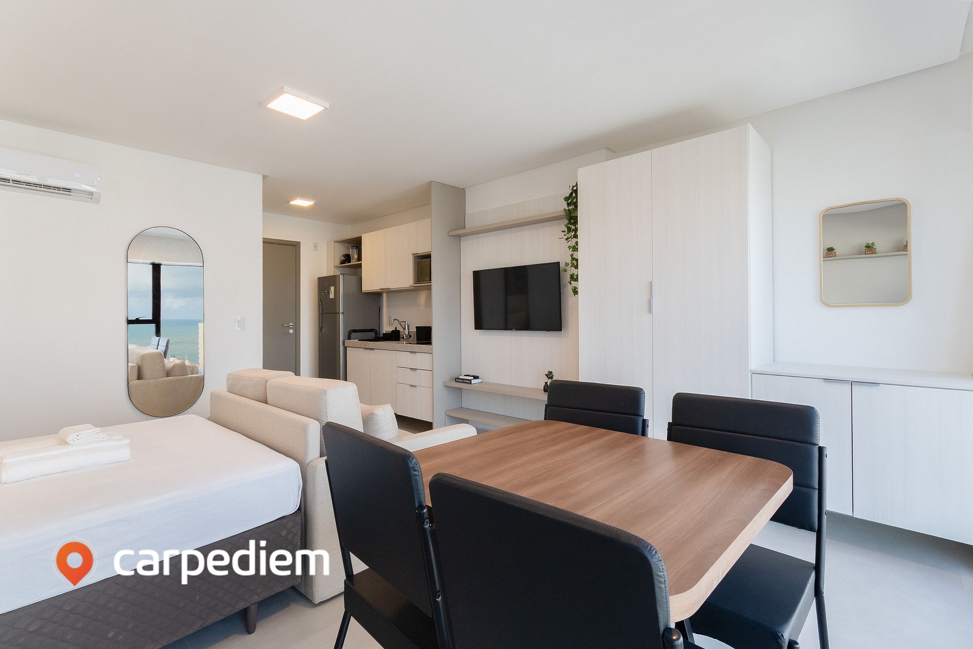 Sinta-se no topo de Boa Viagem! Studio novíssimo no Icon, com design moderno, decoração clean e vista deslumbrante para o mar. Ideal para quem busca conforto e praticidade em Recife. A apenas 200 m da Praia de Boa Viagem, perto do Shopping Recife, de excelentes restaurantes e cafés. Relaxe com o som das ondas ou trabalhe com uma paisagem inspiradora. Viva uma experiência sofisticada e inesquecível. Hospede-se com estilo By Carpediem.