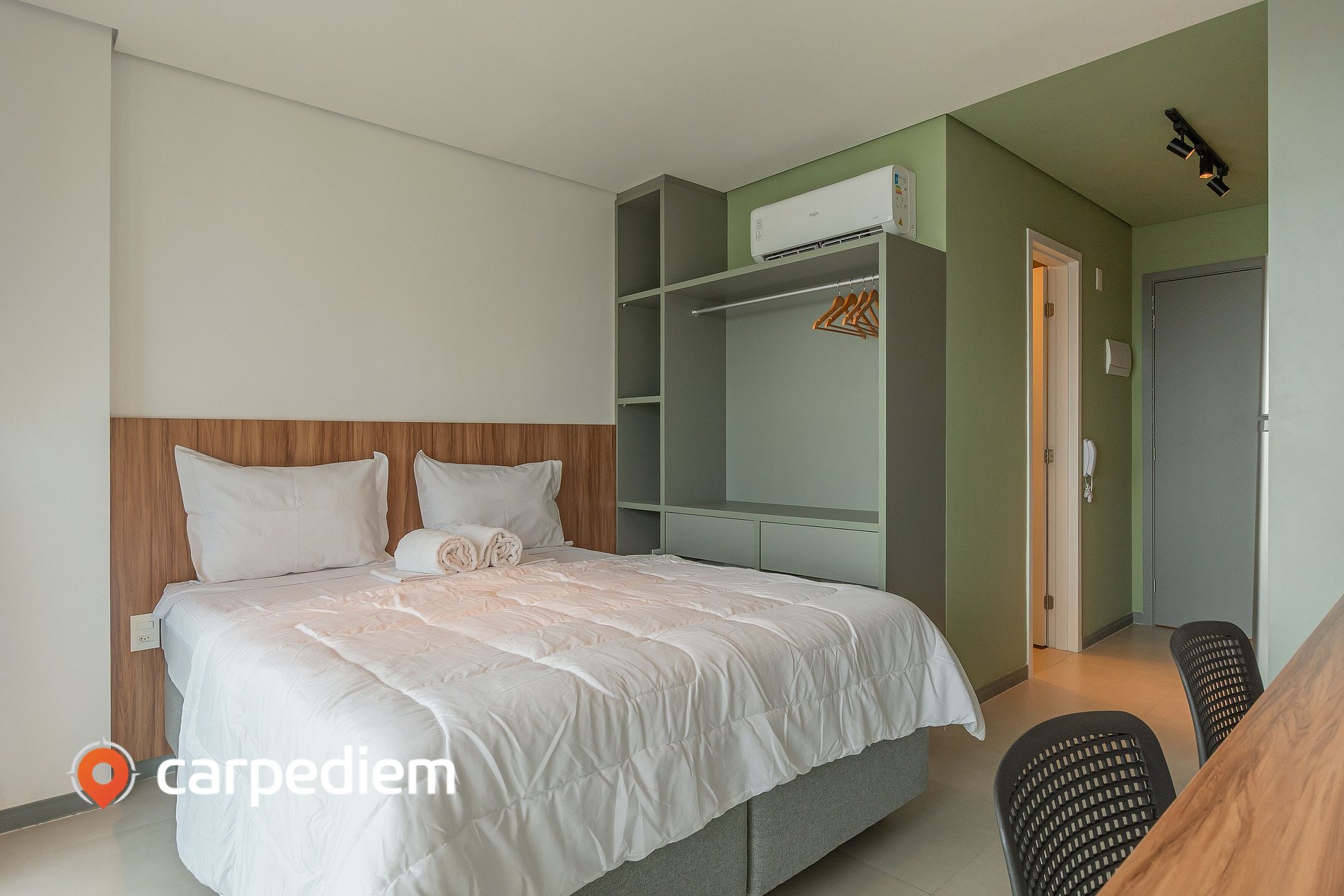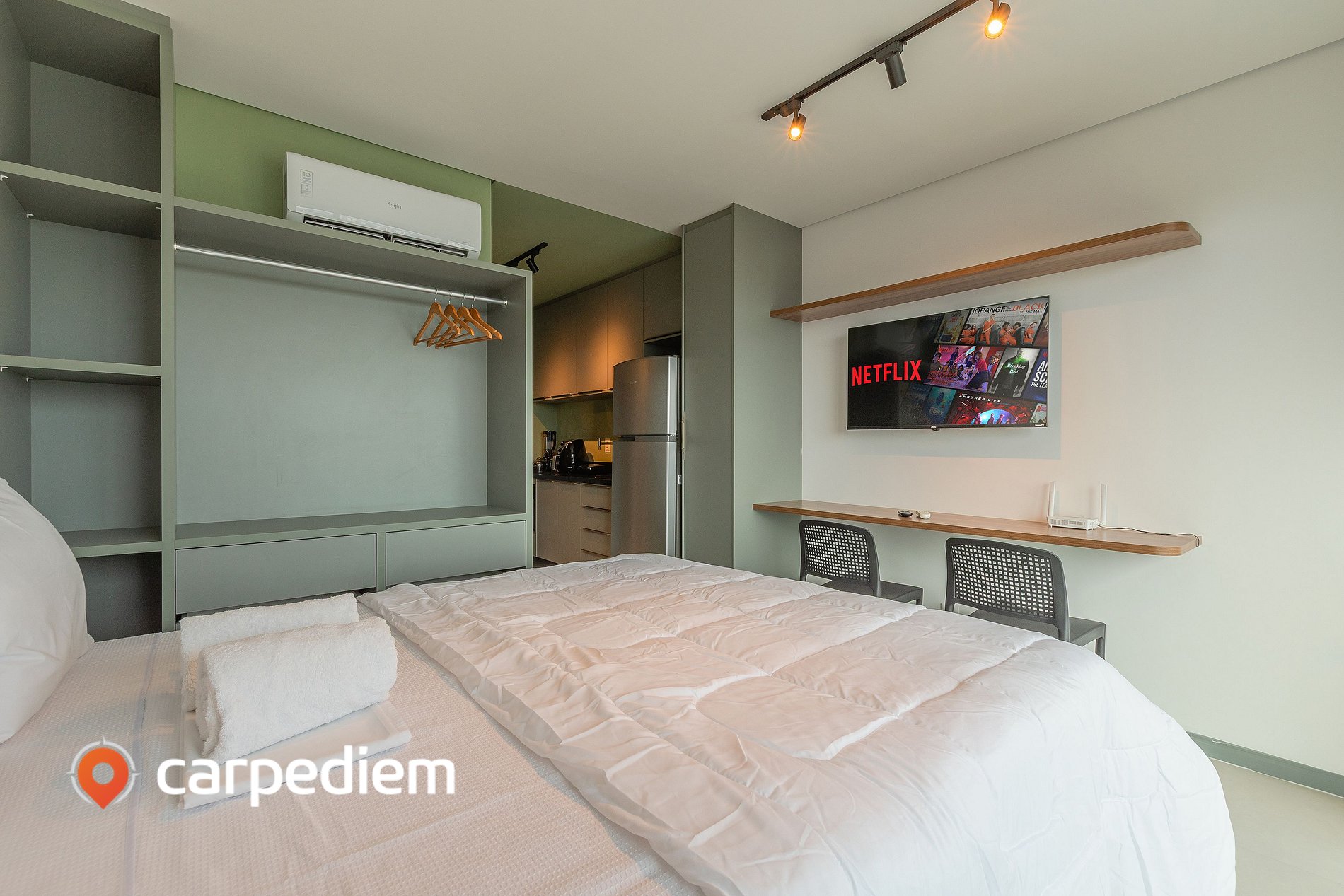 • Mesa para notebook, TV smart, Wi-fi, internet de alta velocidade e tomada perto da cama, ideal para trabalho ou estudos.