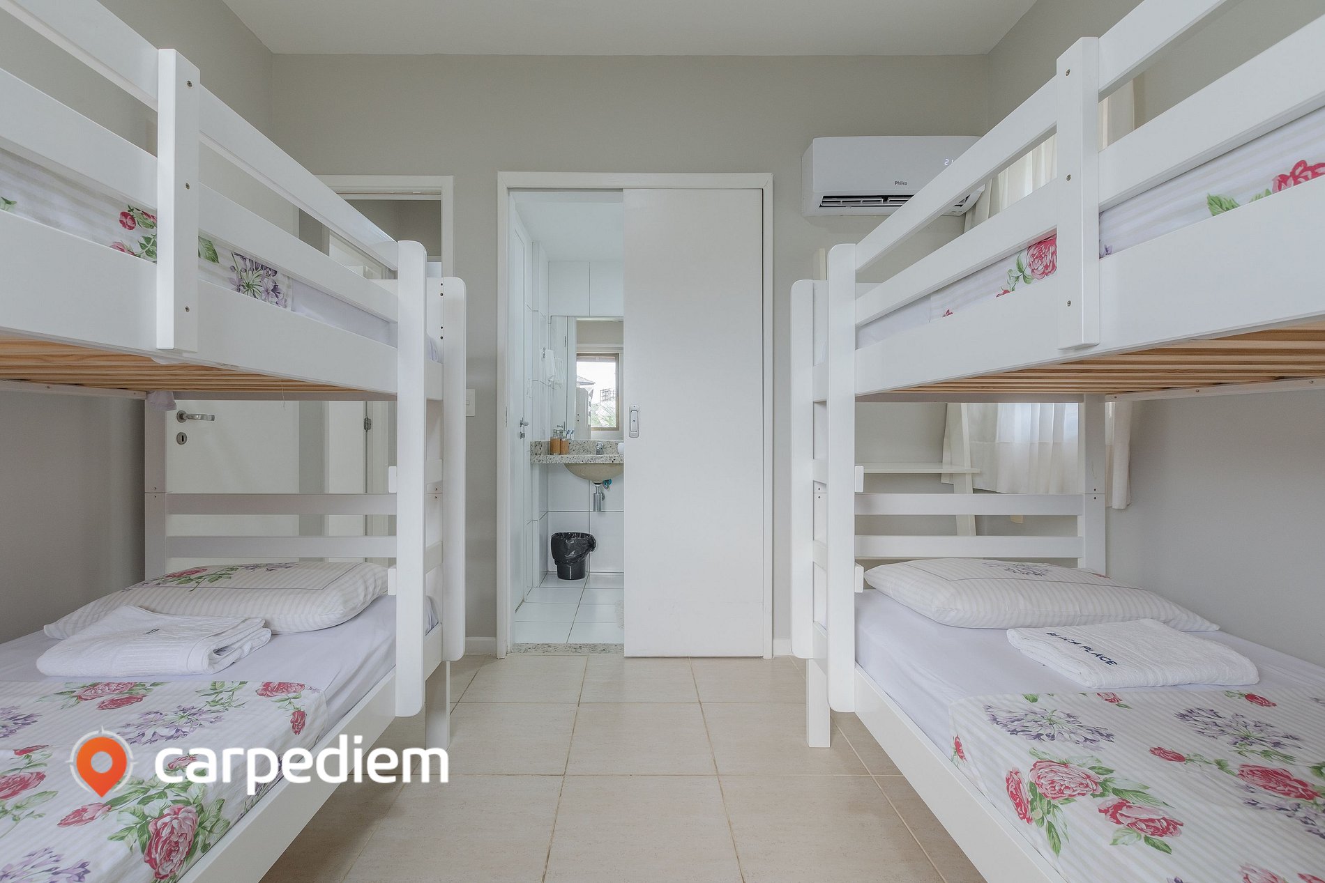 Suíte 3: duas beliches de solteiro + ar condicionado