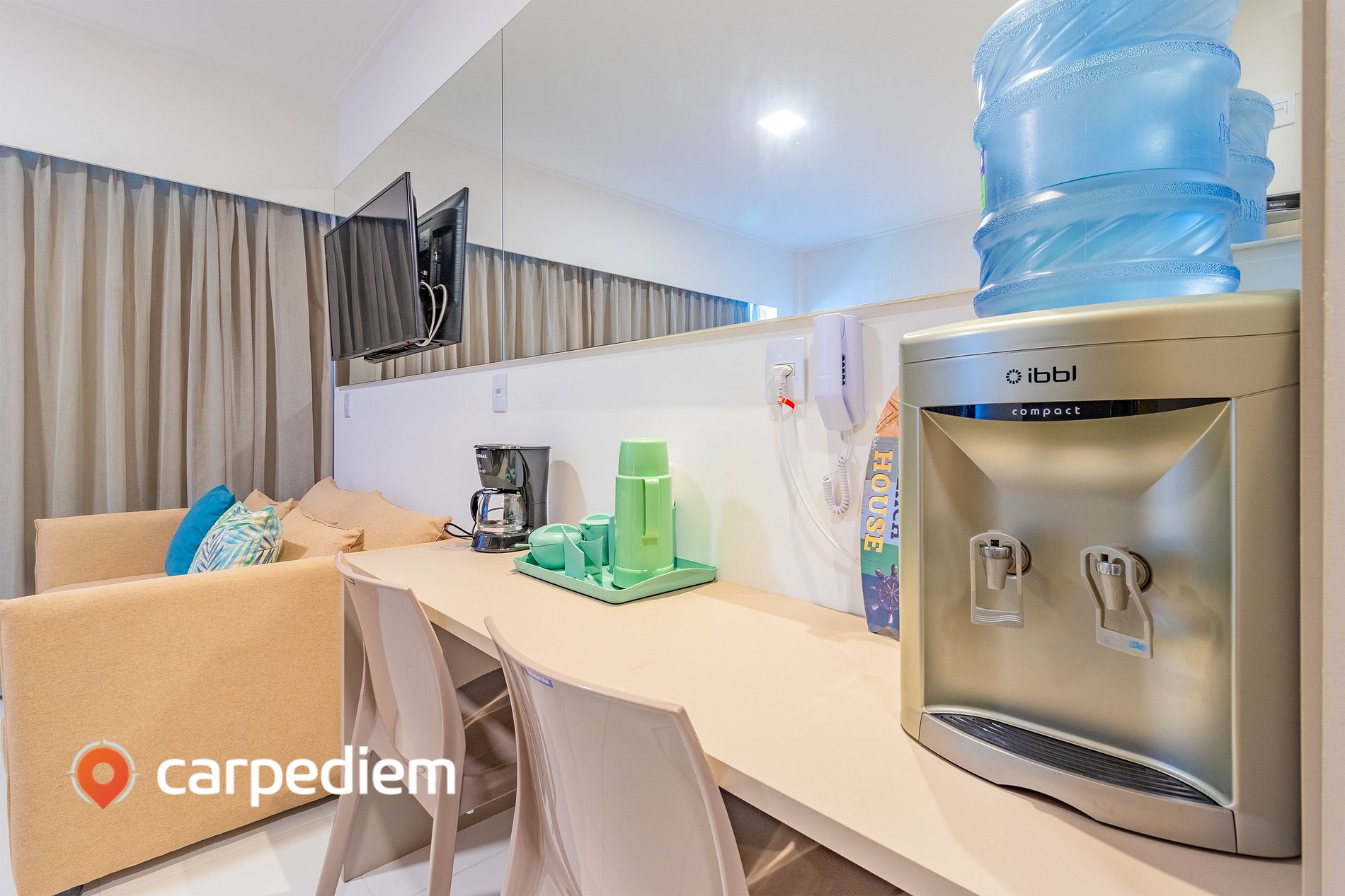 • Coworking: Ambiente funcional para quem precisa trabalhar durante a estada.