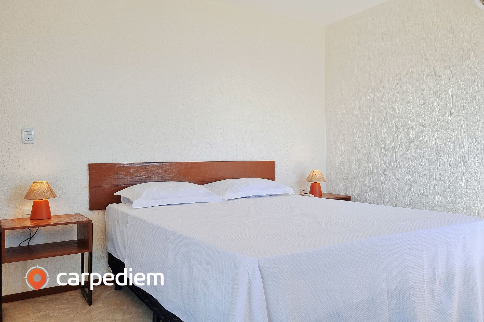 A capacidade em camas é de 04 pessoas, podendo haver acréscimo de mais 2 hóspedes mediante pagamento de R$ 80 por dia por pessoa excedente.