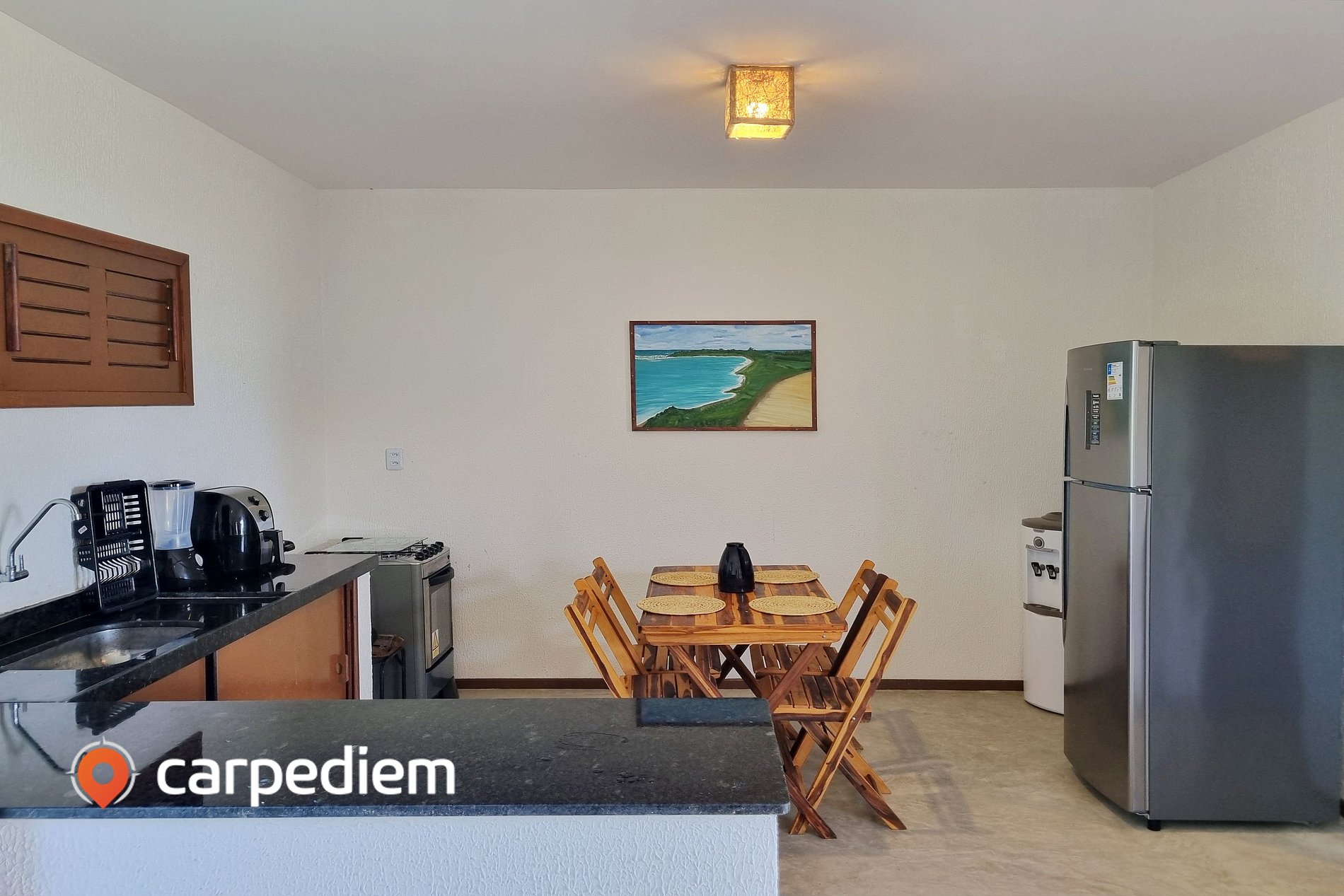 O espaço conta com uma cozinha completa e equipada com Airfryer, Gelador de Água, Micro-ondas, Liquidificador e Sanduicheira. Este cuidado com os detalhes garante que cada estadia seja memorável, proporcionando aos hóspedes um lar temporário cheio de conforto e conveniência em um cenário de tirar o fôlego.