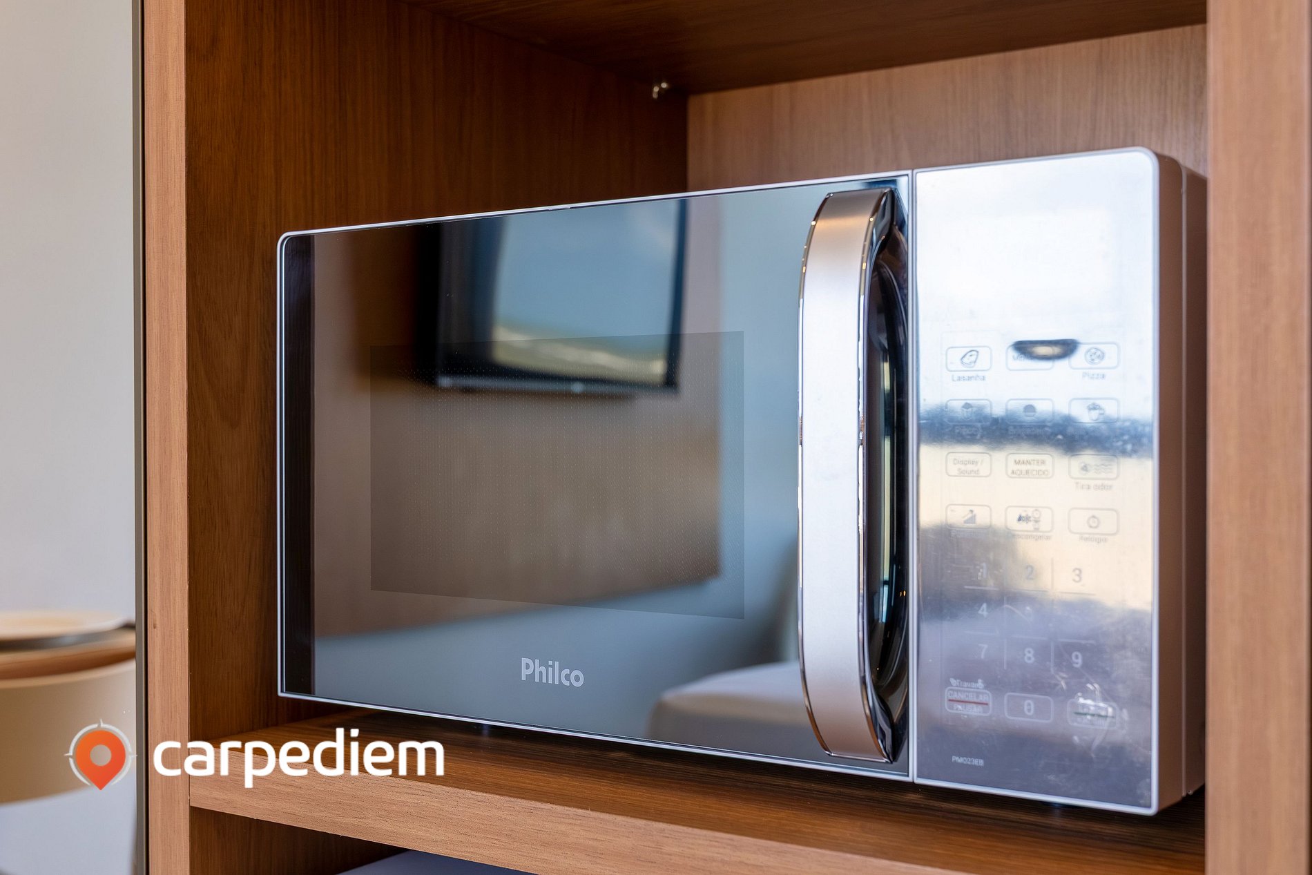 • Cozinha compacta e funcional: preparada para o dia a dia, conta com micro-ondas, mini-frigorífico, torradeira, máquina de café, louças, talheres, copos de vinho e mesa de jantar.