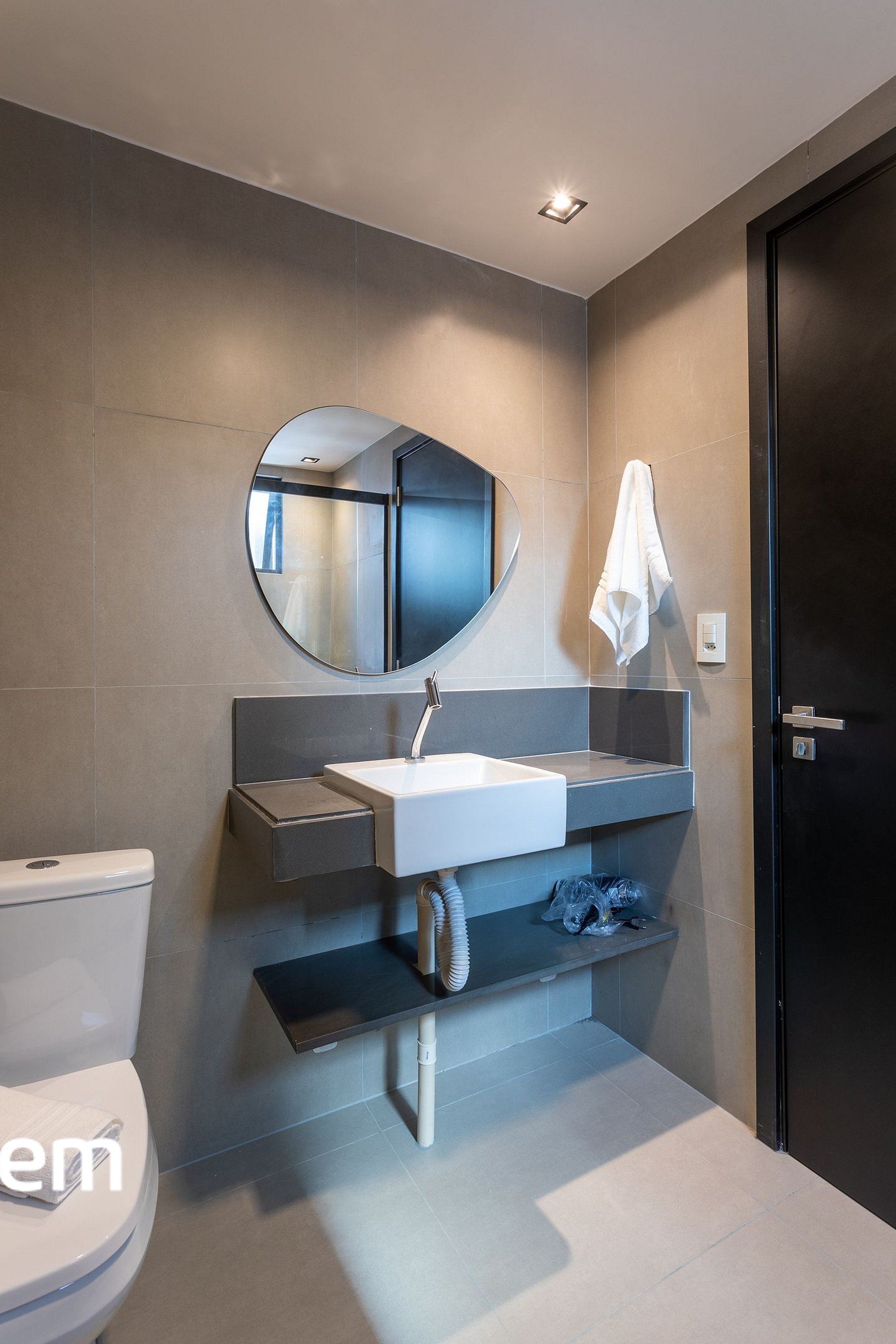 • Banheiro completo: com espelho e box de vidro, além de água quente, toalhas, secador de cabelo e itens essenciais para mais comodidade.