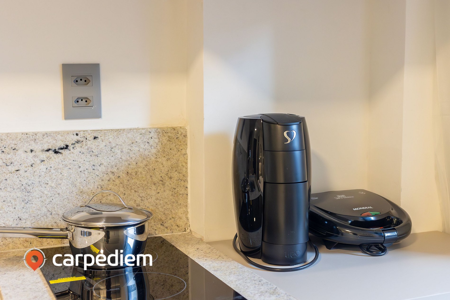• Cozinha compacta e equipada: ideal para o dia a dia, conta com fogão, geladeira, micro-ondas, liquidificador, torradeira, máquina de café, louças, talheres e itens básicos de cozinha.