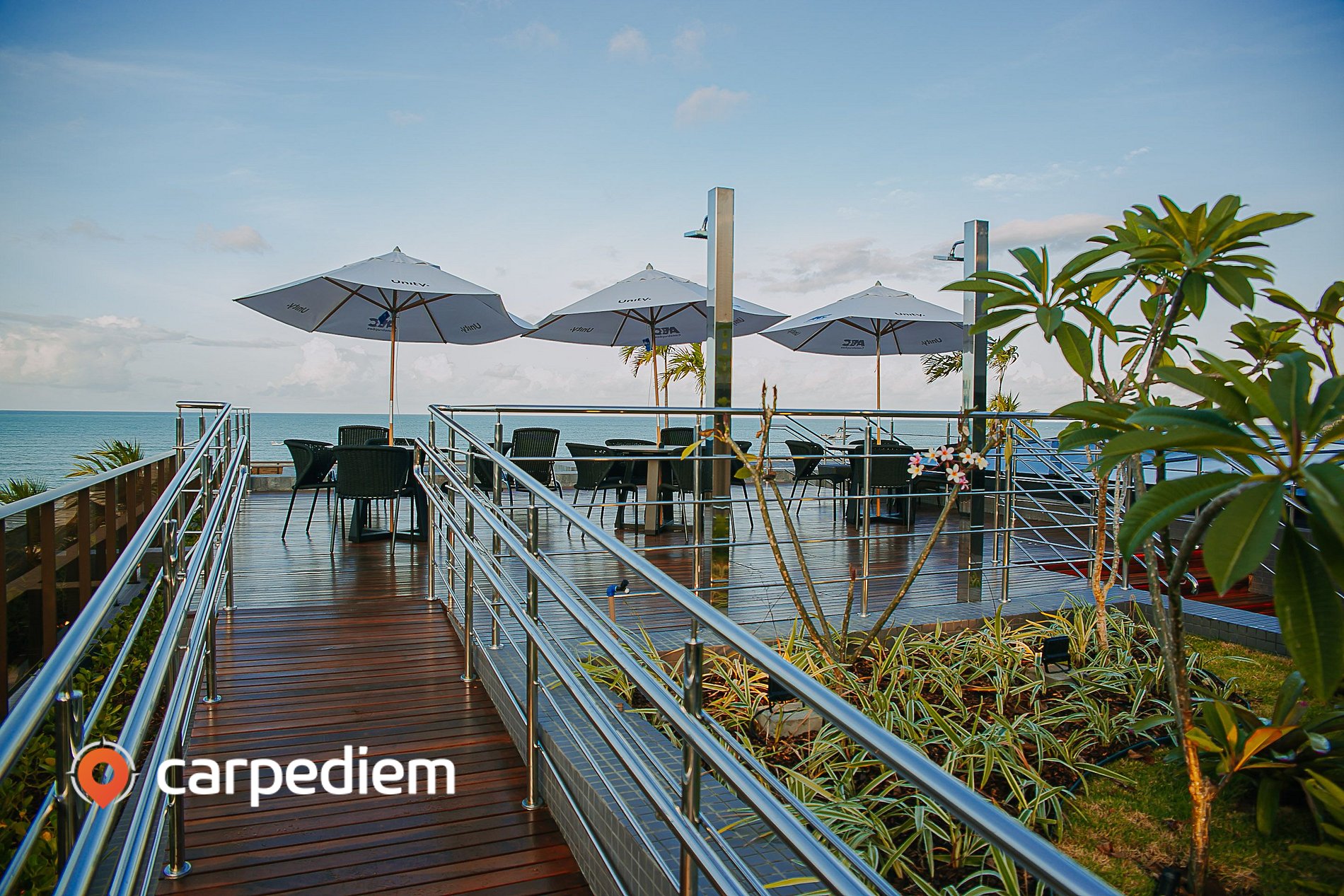 • Mesas, cadeiras e guarda-sóis para curtir a praia com mais conforto.