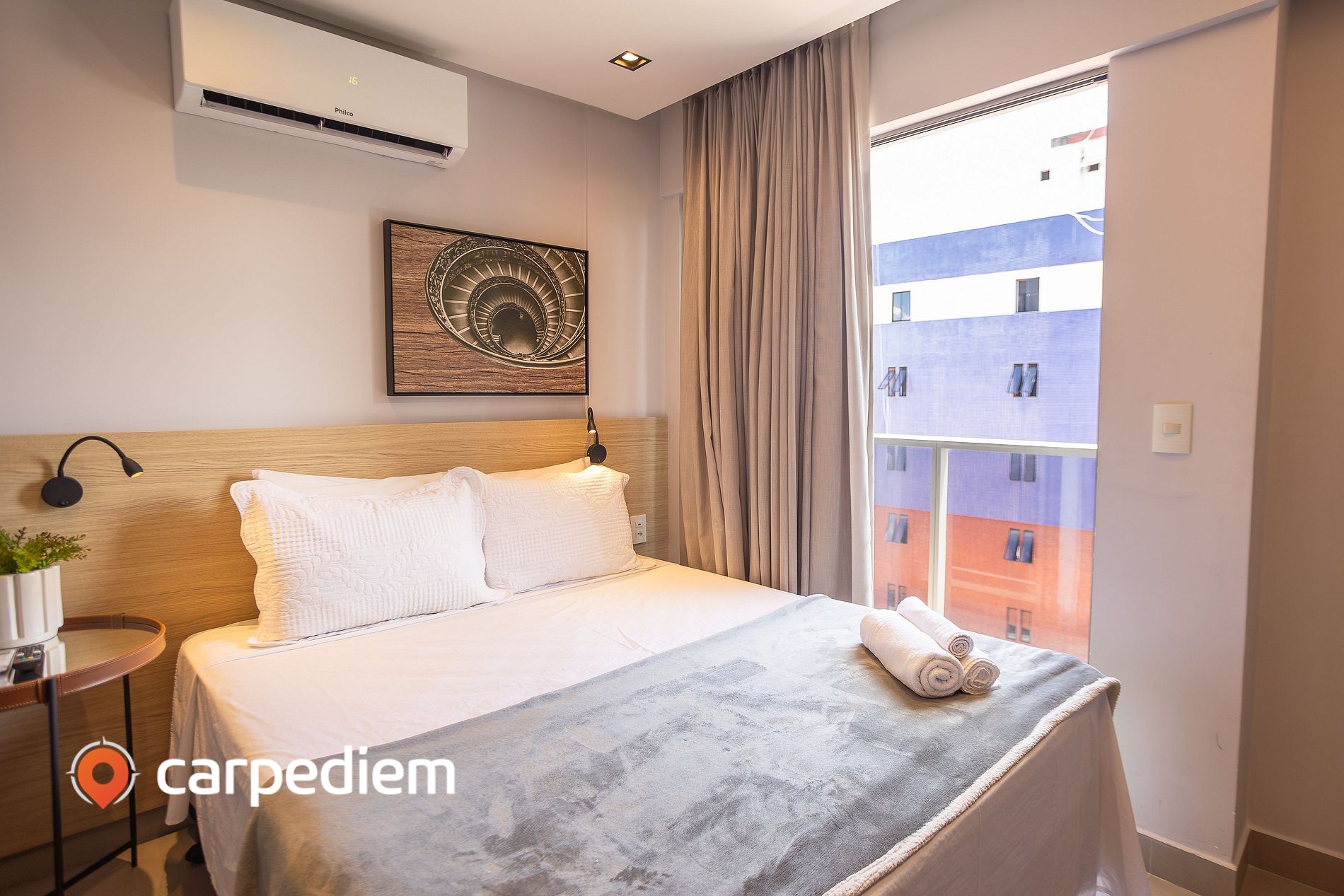 • Detalhes que fazem a diferença: mesa de cabeceira com luz de leitura, cortina blackout e espelho de corpo inteiro, garantindo conforto e organização durante toda a estadia.