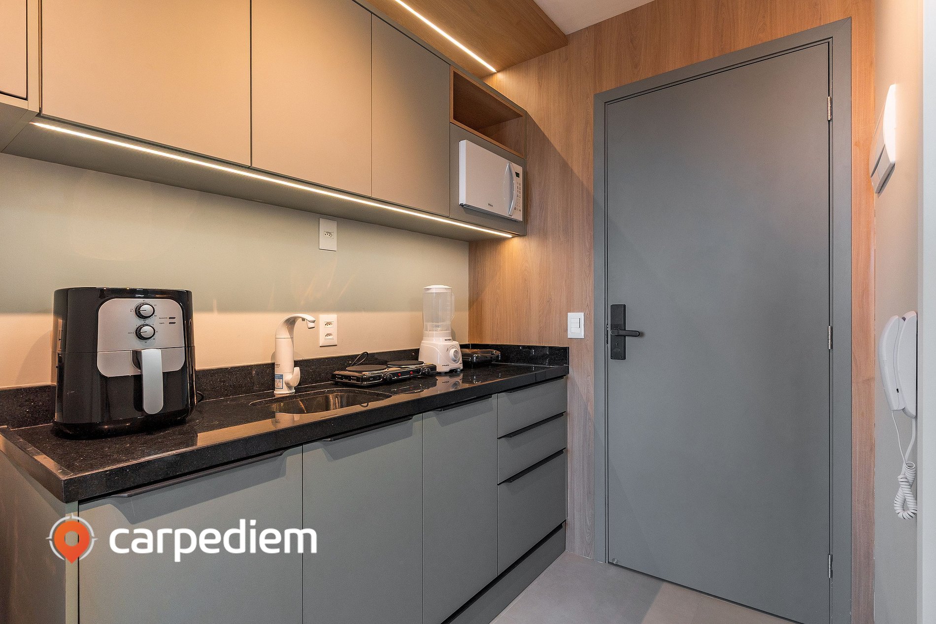 23. O imóvel não possui churrasqueira, mas conta com airfryer.