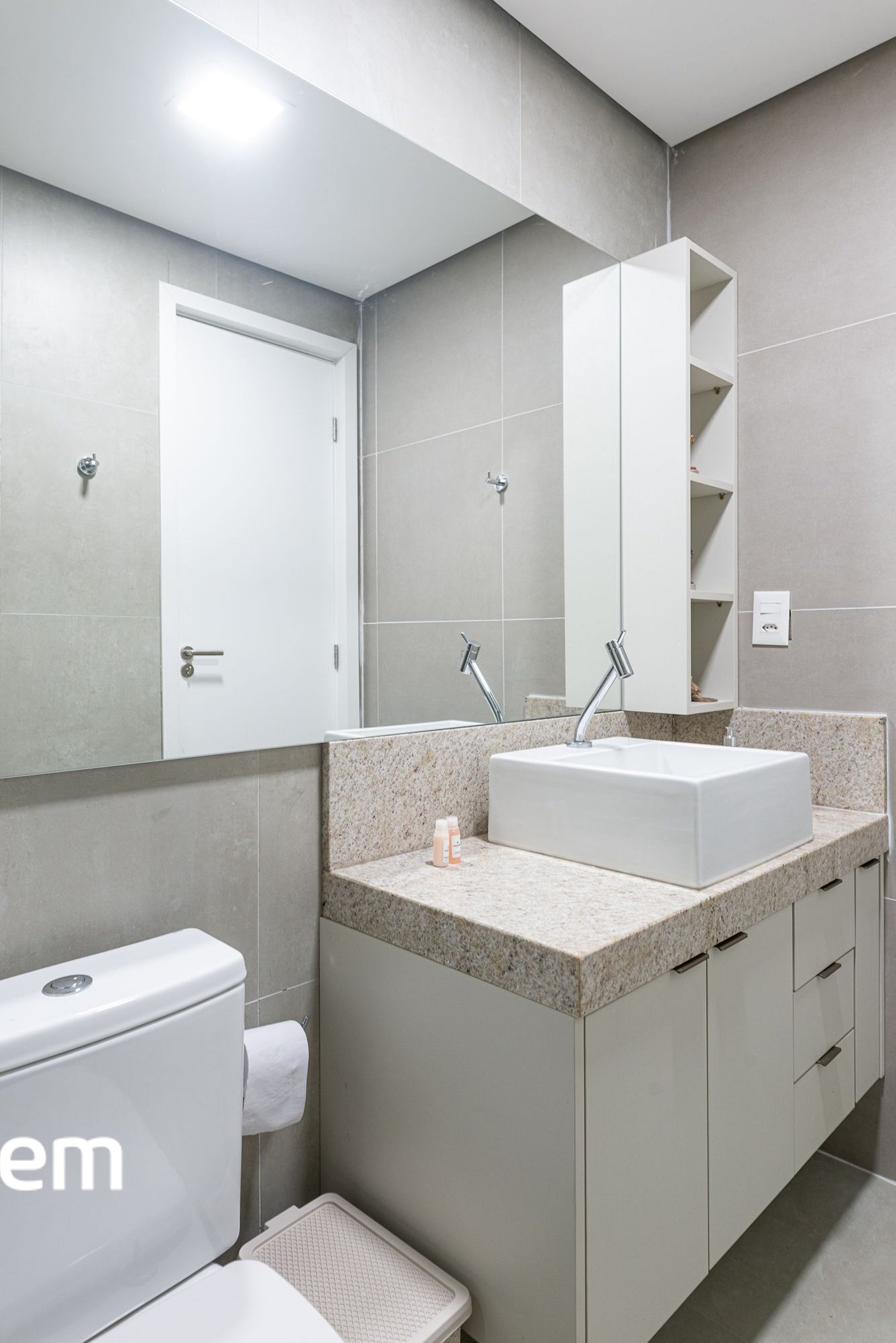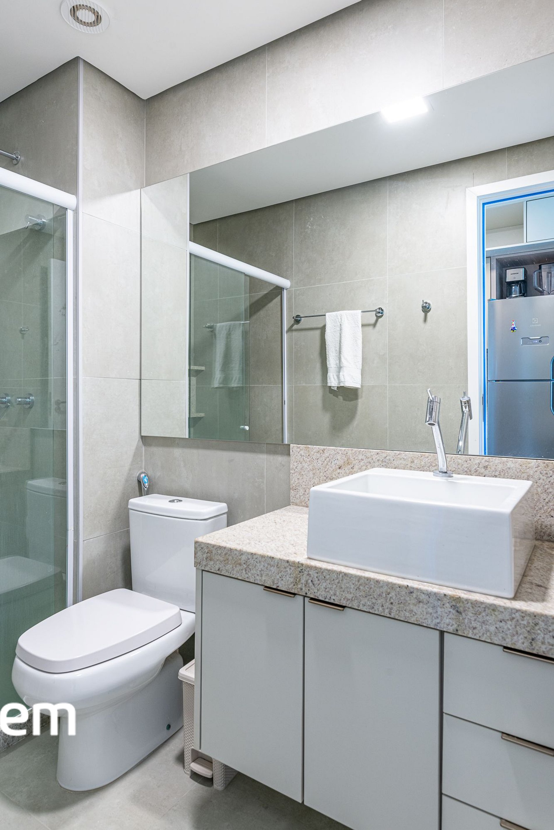 • Banheiro confortável: box de vidro, espelho amplo e acabamento moderno que garantem praticidade e bem-estar.